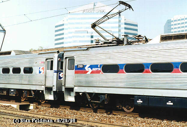 Click her for a look at the new Septa Silverliner Paint scheme on Septa #299. It is on display at the Wilmington Delaware Amtrak Station. 9/29/98.