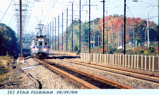 Click here to see a Septa Regional Rail R-7 train about to enter the Cornwells Heights Station, Bucks County Penna. Septa #281 is in the lead. This train will run to Trenton N.J. 10/19/00.