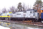 -Click here for a long hood look at Southern Railroad Company of New Jersey GP-10 #102,"The City Of Pleasantville", ex Conrail # 7550. This shows the classic CNJ style paint job. Winslow Junction, New Jersey. 4/13/03