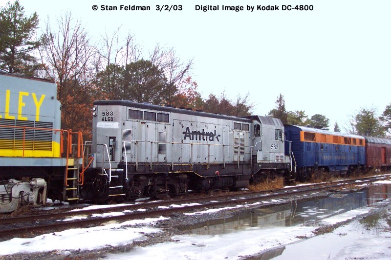 -Click here for a rear view of ex-Amtrak CF-7 # 583 at Winslow Jct, N.J. now wearing ALGX reporting marks.The CF-7's were rated at 1500 and built between 1949 and 1956. Winslow Junction, New Jersey. 3/2/03
