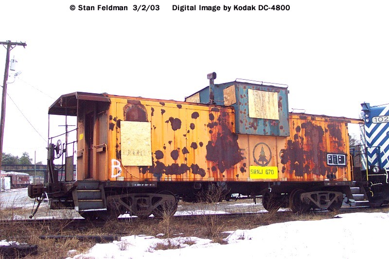 -Click here for a side view of SRNJ caboose # 670, a former Maine Central Railroad caboose. It is seen here at Winslow Junction N.J. 3/2/03