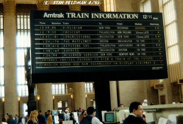 The Amtrak Train Information Board in The 30th Street Station, Phila. Penna. Acela Regional, Northeast Direct, and Weekend Metroliner Trains are shown. Digital Image by Kodak DC-4800. 9/8/01.