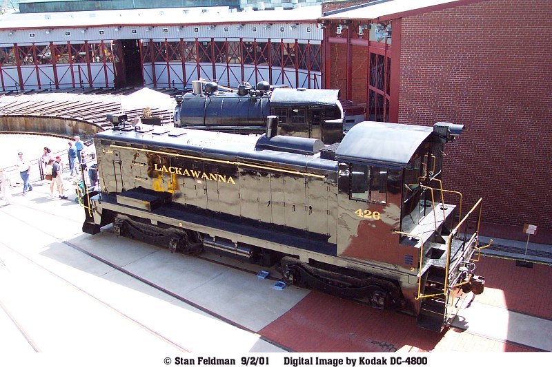 Click here to see Delaware Lackawanna Railroad , (DL&W) SC # 426. SC was the first diesel switching locomotive built by EMD, before the SW1. This locomotive, ex-Bethlehem Steel 109, is rated at 600 HP and was built in March 1935. Rail Expo 2001, Steamtown NHS. 9/2/01