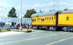 -Click here to see the first section of Union Pacific Office Cars on a siding along Darien Street. The cars would be pushed across Darien Street on temporary tracks, into a parking area near the Comcast Convention Center. Philadelphia Pennsylvania, 7/23/00