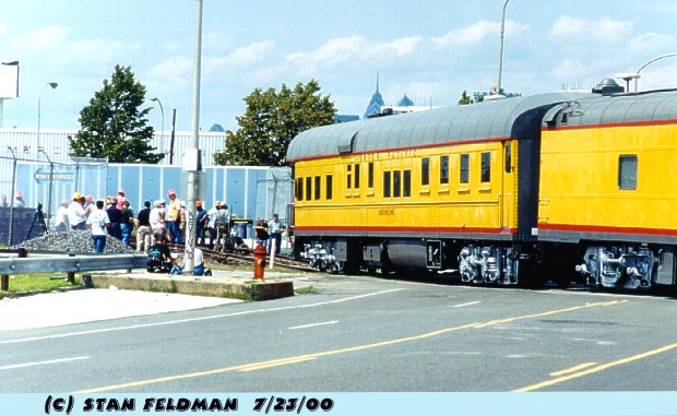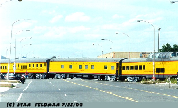 -Click here for a wide look at The Union Pacific Business Cars across Darien street. The uneven roof lines on The Business Cars shows the poor condition of the track. Phila. Penna. 7/23/00.