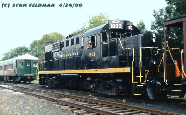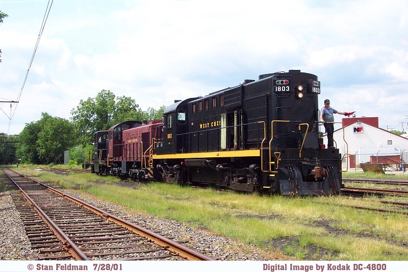 -Click here to see West Chester Railroad #1803 ALCO DRS-RS-18 with WCRR # 3 and West Chester Railroad 65 ton #9. WCRR # 1803 is moving equipment around the yard in West Chester Pa. Digital Image by Kodak DC-4800. 7/28/01.| Click here to Search Stan's RailPix ! |
