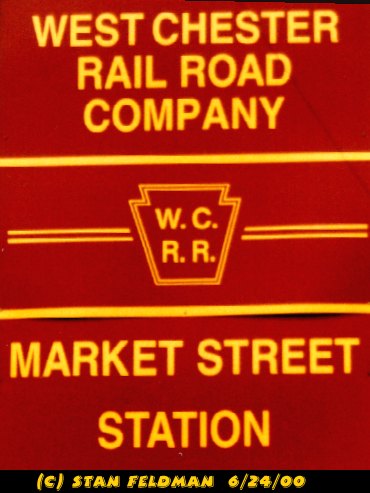 -Click here to see the sign for The West Chester Railroad Market Street Station. There is a caboose ticket office and a nice platform area, but no actual station building. West Chester Pa. 6/24/00.