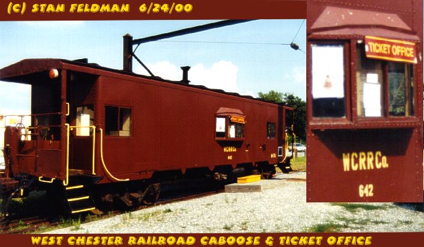 -Click here to see West Chester Railroad Caboose (WCRL) #642, ex NYC # 20331, PC/Conrail # 21642, class N-7A built in 1970. It is used as a ticket office at The Market Street Station area, West Chester Pa. 6/24/00.