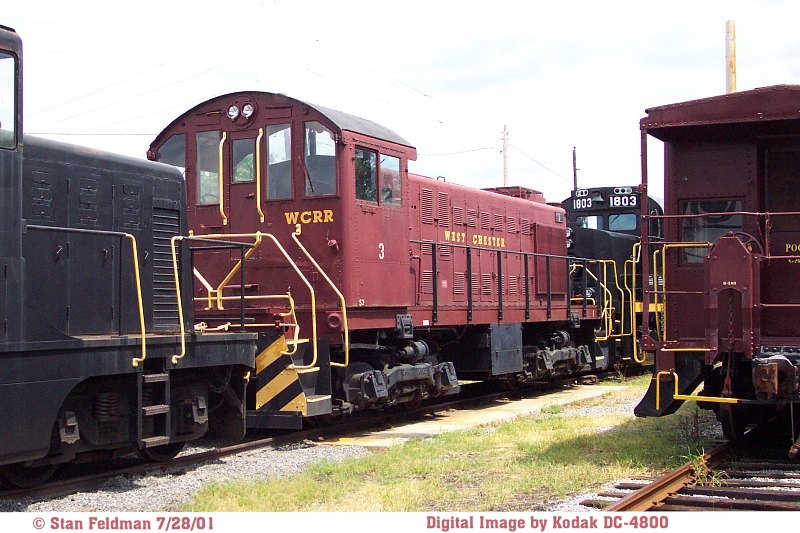 -Click here to see WCRR # 3, an ALCO S-2 built in 1949 for the B&O as # 9115. This engine was owned by Rohm & Haas and was bought by the Wilmington & Western. It was swapped for an SW600 by it's present owner here at the West Chester Railroad. Digital Image by Kodak DC-4800. West Chester Pa. 7/28/01.| Click here to Search Stan's RailPix ! |