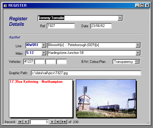 Railref have currently produced a simple Microsoft Access based