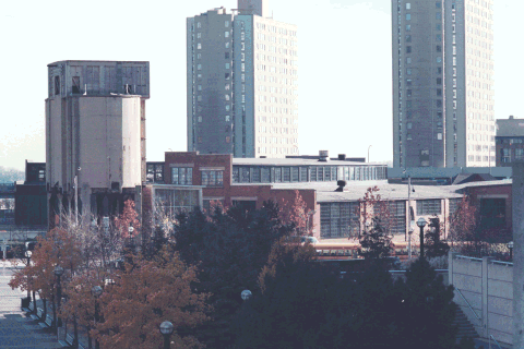 elevated 'Skywalk' and roads to the Skydome, just west of Union