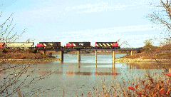 BEARE - The York Subdivision crosses over the CP Belleville Sub at Beare. This spot is at the upper end of Meadowvale Road, northeast of the Metro Toronto Zoo. Take Meadowvale north to its end at Plug Hat Road, then go east on Plug Hat Road, then go south on Beare Road to the CP tracks. There is room to park on the side of the road. The bridge is a short walk from the road. This area is not patrolled frequently, but stay back from the tracks in any event.