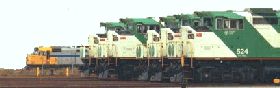 A freight terminal which stood on the site of the old Lambton roundhouse in the mid-sixties was demolished in 2004, and a Wal-mart store now stands on the site. This is good news for fans....the parking lot gives a great view of the power tied up by the yard office.