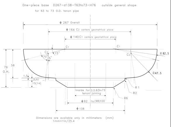 the outside (lateral and below part) shape, and the in-going of tenon (pole top end) diameter interval, are preserved.