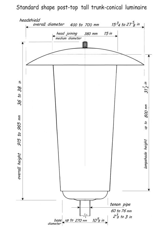 STANDARD TALL TRUNK-CONICAL POST-TOP LUMINAIRES Down light design Assembly lateral view |