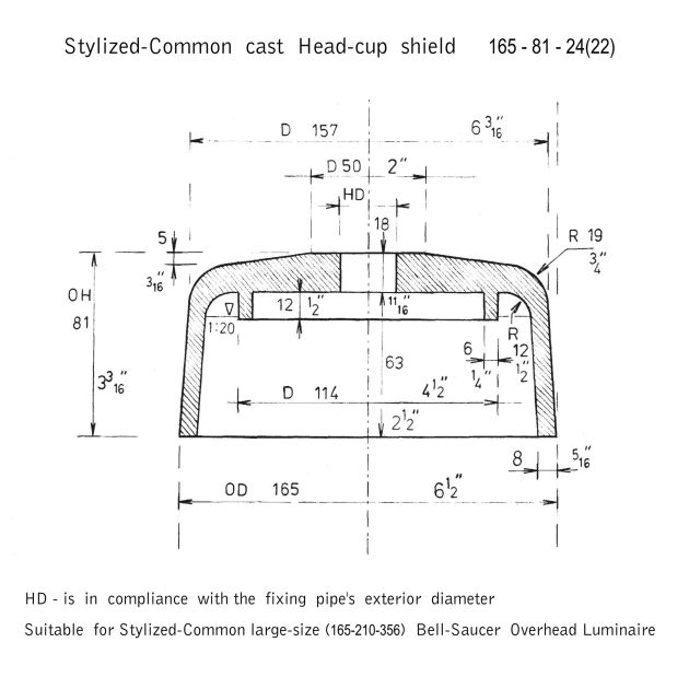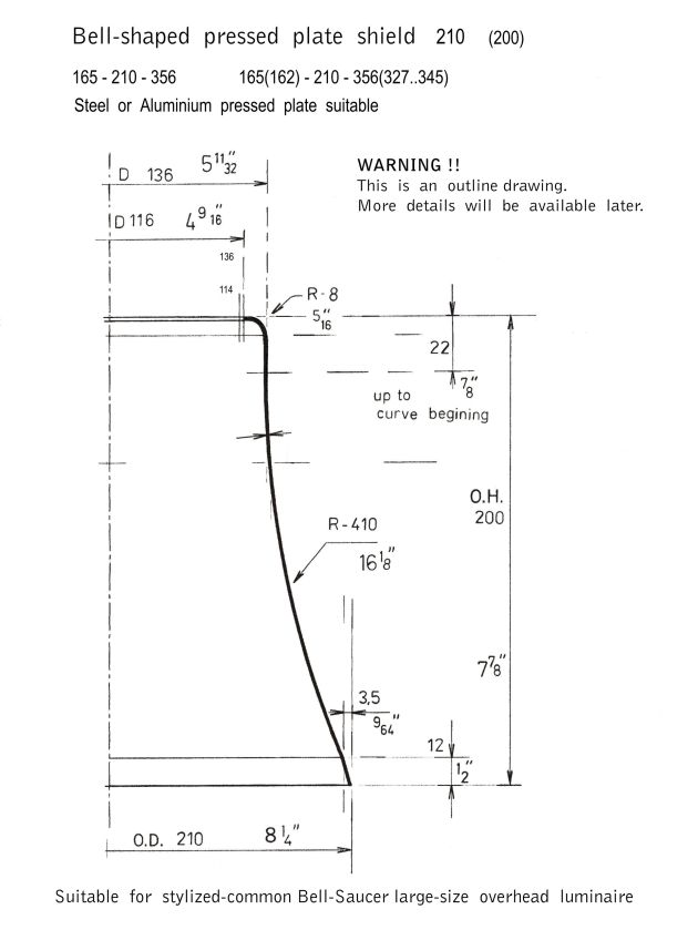 Stylized Bell-Saucer overhead luminaires components