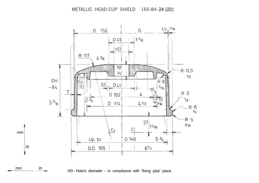 - Pressed Aluminium or steel plate Saucer-shaped shield.