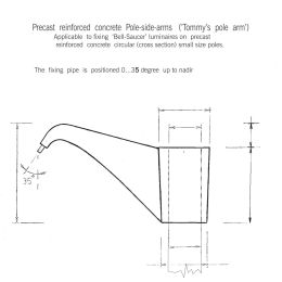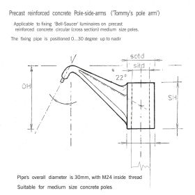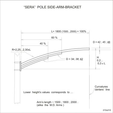 Length=1500...2000mm. Applicable on concrete, or metallic poles of any sizes or shapes. Suitable luminaires : - 'Bell-Saucer' of medium or large size. - Side-arm lanterns for 42 to 48mm arm end diameter. |