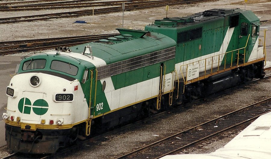 | SPECIAL FEATURES | Brake Equipmt: 26L, Clasp Brakes GO purchased 1973 - converted bet'n 1973 & 1981 from FP7A to ACPU - contains 600Kw 575V 60Hz alternator for aux train control - ACPU not capable of independent movement so train normally powered by GP40(-2) - control cab only | same as 900 | same as 900 | same as 900 |