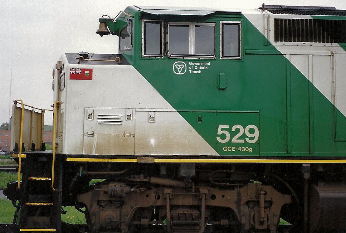 | . Province of Ontario text and Trillium logo removed (began August 1992 when the NDP government proposed selling GO Transit then leasing back the equipment. They believed it would save the taxpayers money and reduce GO Transit needed funding. The GO Board approved this action August 1992; cutbacks began 03 July 1993. More damage was done by Harris.) When a unit entered for 1P, it was completely repainted, most logo/text can not be detected now - the red ensign was not removed, only replaced when unit was fully painted. | |||