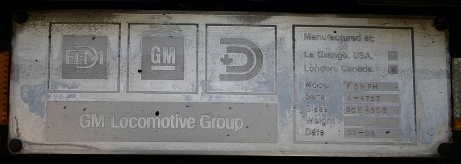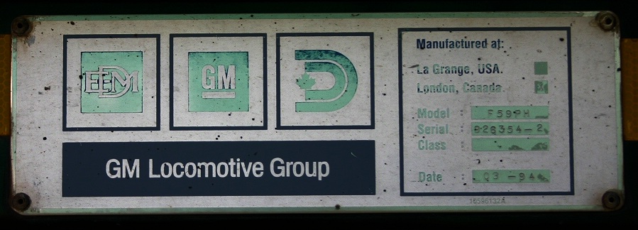 | . Three colour classification lights relocated from where the sister F40 had them | . Province of Ontario Trillium Logo/Text under each side cab window | ||