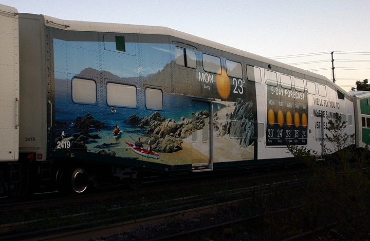 Car Preparation: a car is removed from the train on the weekend or Mondaythe car is washed on Tuesdaycar then moved into the shop Wednesday morning for TDITDI applies the vinyl Wednesday, Thursday & FridayGO applies all the decals the following Monday and held until Thursday in case the sponsor wants to photograph itthe car then goes back on a train to begin its advertising career All wraps by West Palm Media unless otherwise noted
