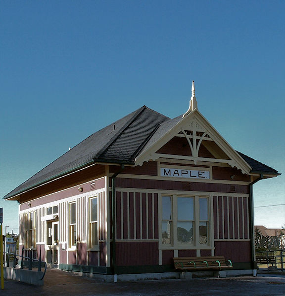GO would like to rehabilitate Maple station as they did with the former CN Aurora depot. The Maple station was remodelled over 100 years ago and GO wanted to restore the exterior of the station to its turn-of-the-century Grand Trunk Railway appearance - the interior changes to provide for improved ticket sales and the passenger waiting facilities as well as add washrooms and make the station fully accessible to the physically disabled (1993)