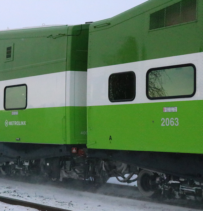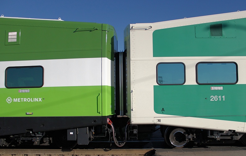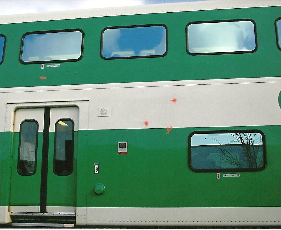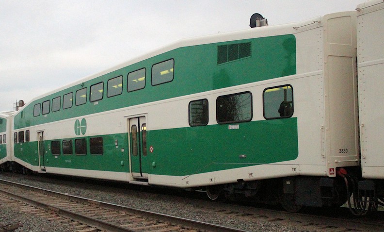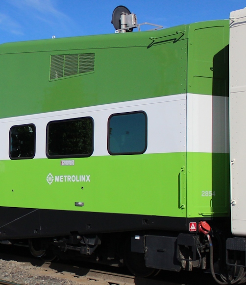 GO 2830 does not have '2830' painted at the B end only (A end okay & bulkheads okay) (Note: All new paint scheme coaches do not as well, replaced with 'Metrolinx')