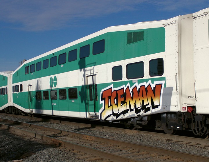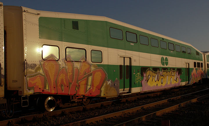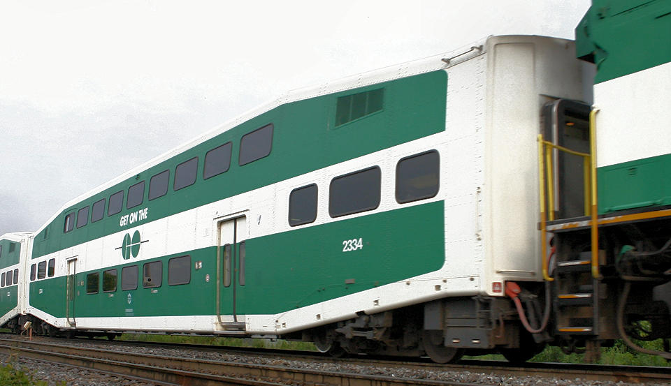 GO 2334 in 2010 with GO Transit |  GO 2334 struck by vandals in 2014