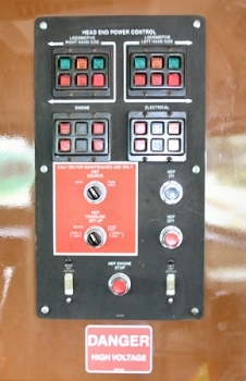 [ Engine Control Panel | Computer Display Panel | Head End Power Panel | Lower Electrical Panel ] [ To 'Under The Hood' | To 'Inside The Cab' | To 'Front Pilot Details' | To 'Multiple Unit (MU) Cable' ] | ||