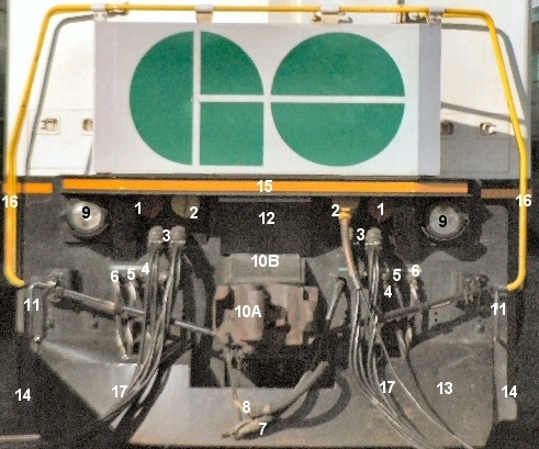 ![]() This is an interactive image map: (Pilot image is pre-loading and may take dial-up viewers a little longer - check your "Loading Status Line" as an indication / text is immediate) [ To 'Under The Hood' | To 'Cab Rear Panels' ] [ To 'Inside The Cab' | To 'Multiple Unit (MU) Cable' ]