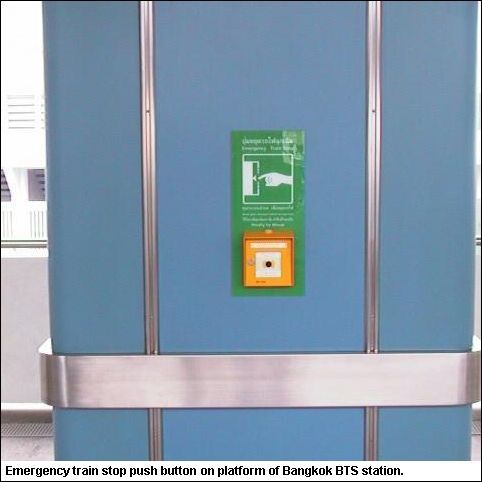 Platforms are provided with emergency buttons so that passengers can stop trains by operating the button and thus dropping the ATP codes. Platforms are also provided with mirrors to assist train operators when closing doors. Clocks are located on every platform and mezzanine and are consistently accurate.