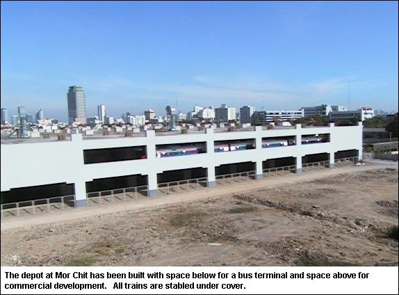 The administration offices, depot and control centre are located at Mor Chit. The depot site was constrained in various ways and access is only by reversing all trains through the headshunt at the northern end of Mor Chit station. The depot has only one entrance. The site also requires that trains can only pass through the automatic washing machine by reversing twice.