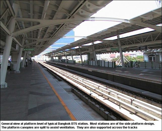 A new metro system opened recently in Bangkok, Thailand called "Skytrain". This page describes the background, the design features and the operation, following recent visits.