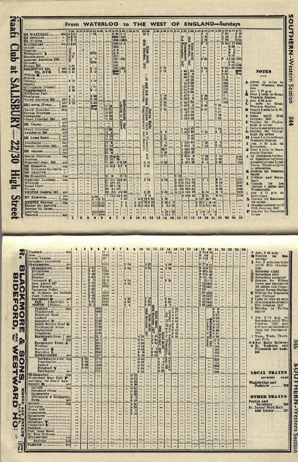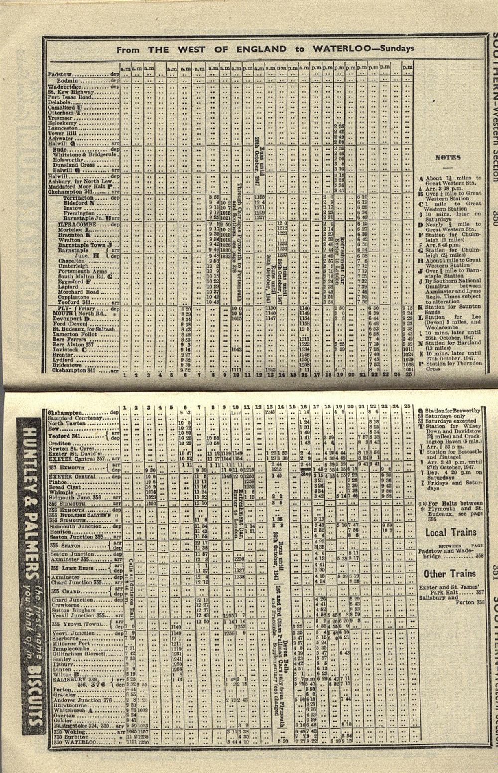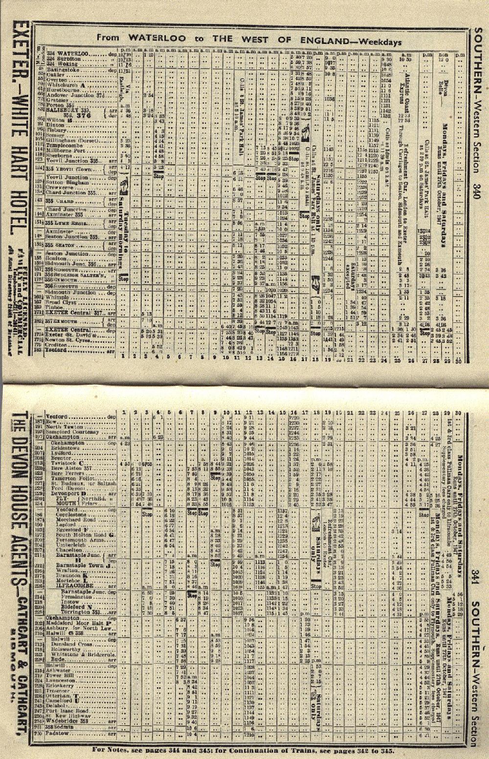 | Southern Railway Timetable - 1947 Waterloo to West of England in six pages 1 2 3 4 5 6 | ||
