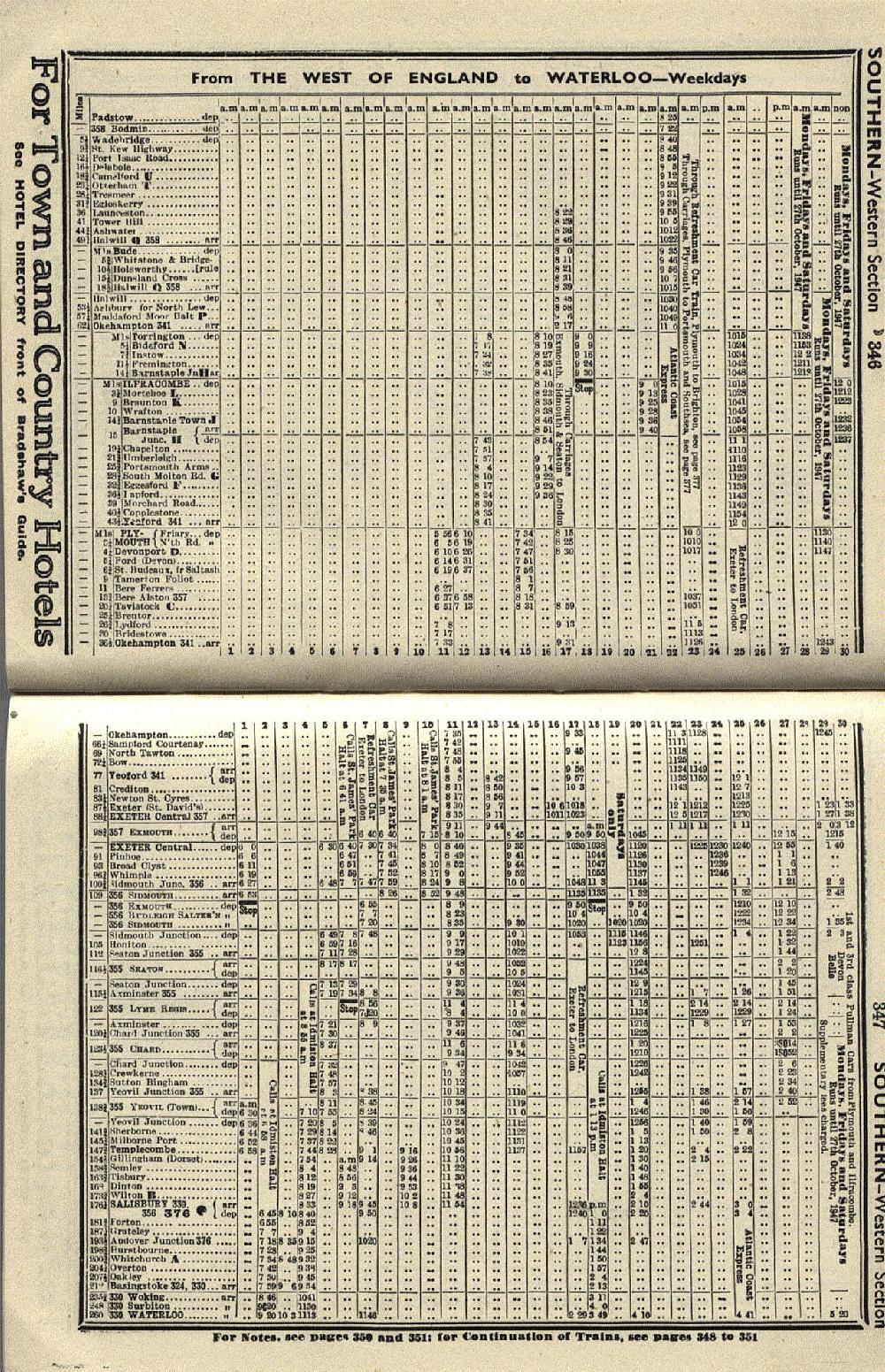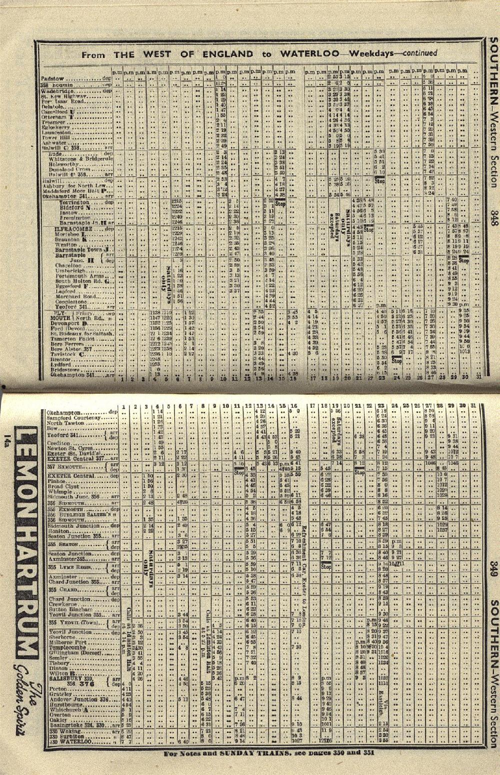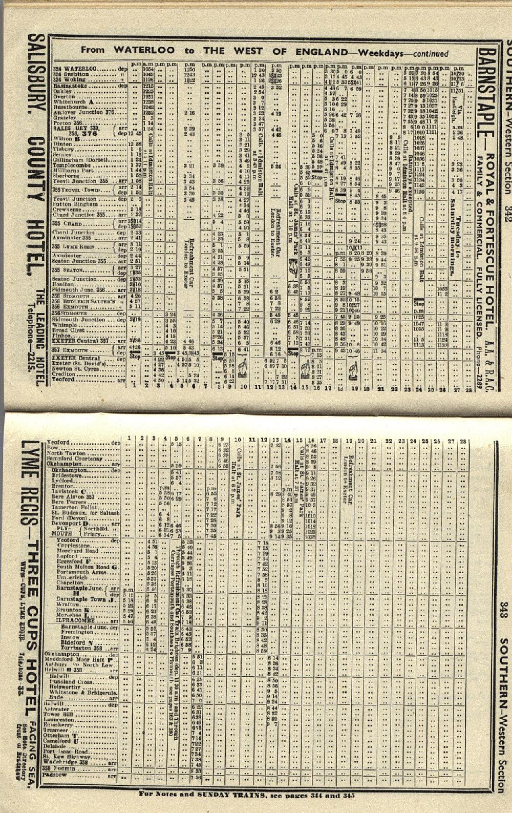 | Southern Railway Timetable - 1947 Waterloo to West of England in six pages 1 2 3 4 5 6 | ||