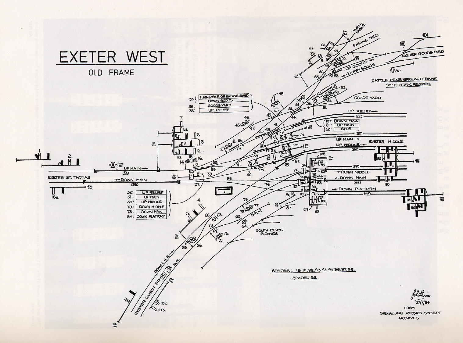 | Exeter West | Diagram for old frame (pre-1959) (courtesy John Hinson) | |