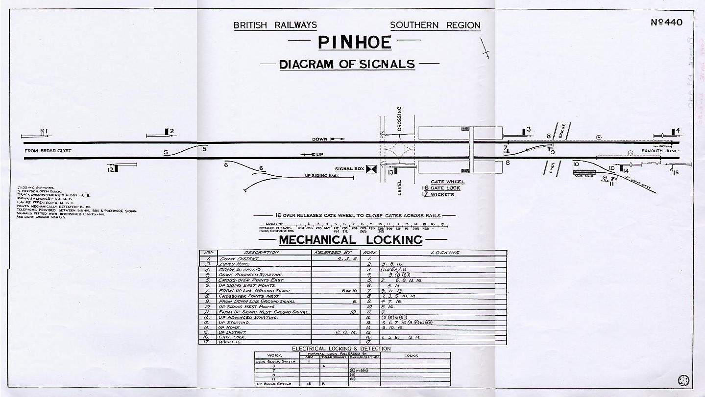 | Pinhoe | Diagram for 1950 (reduced BR(SR) office copy with locking-table) (courtesy Paul Carter) | |