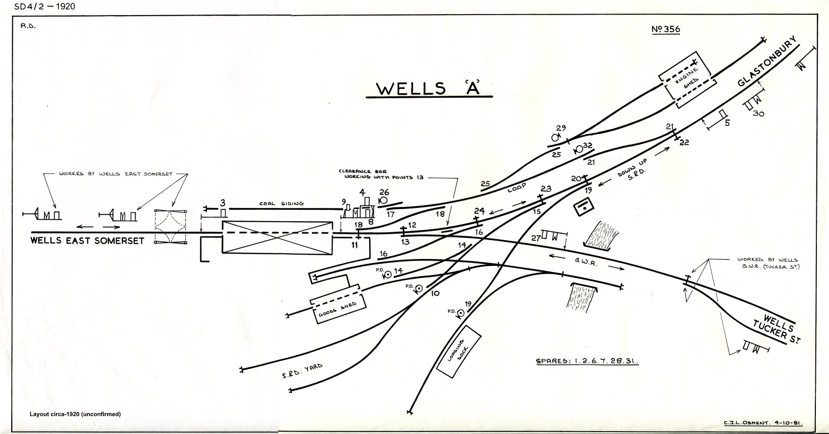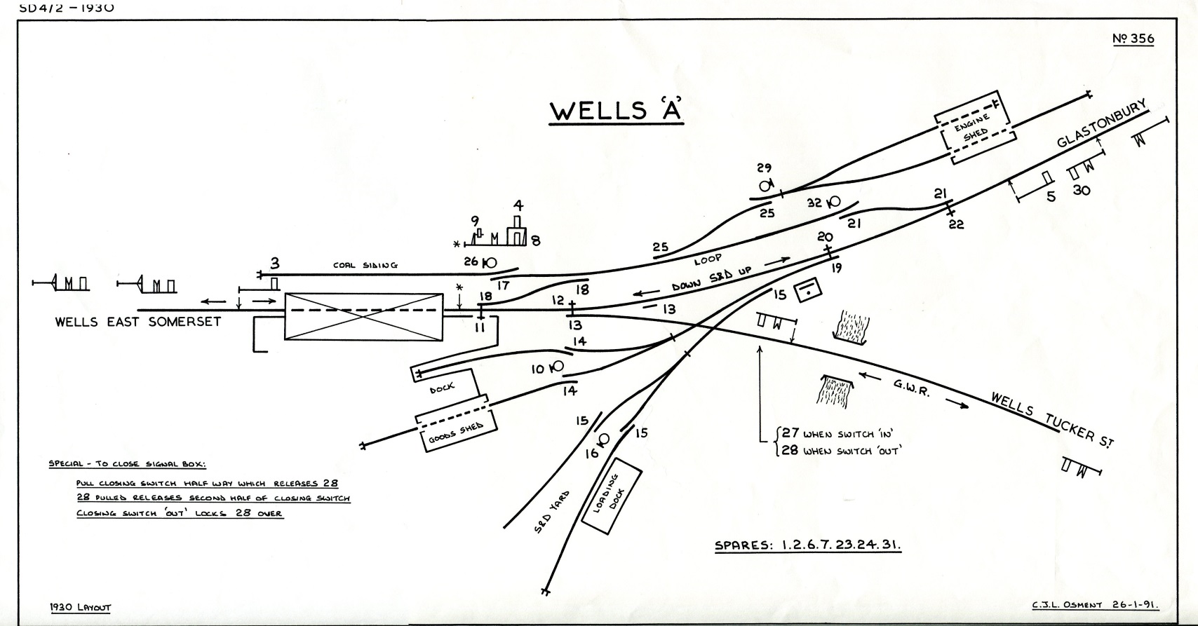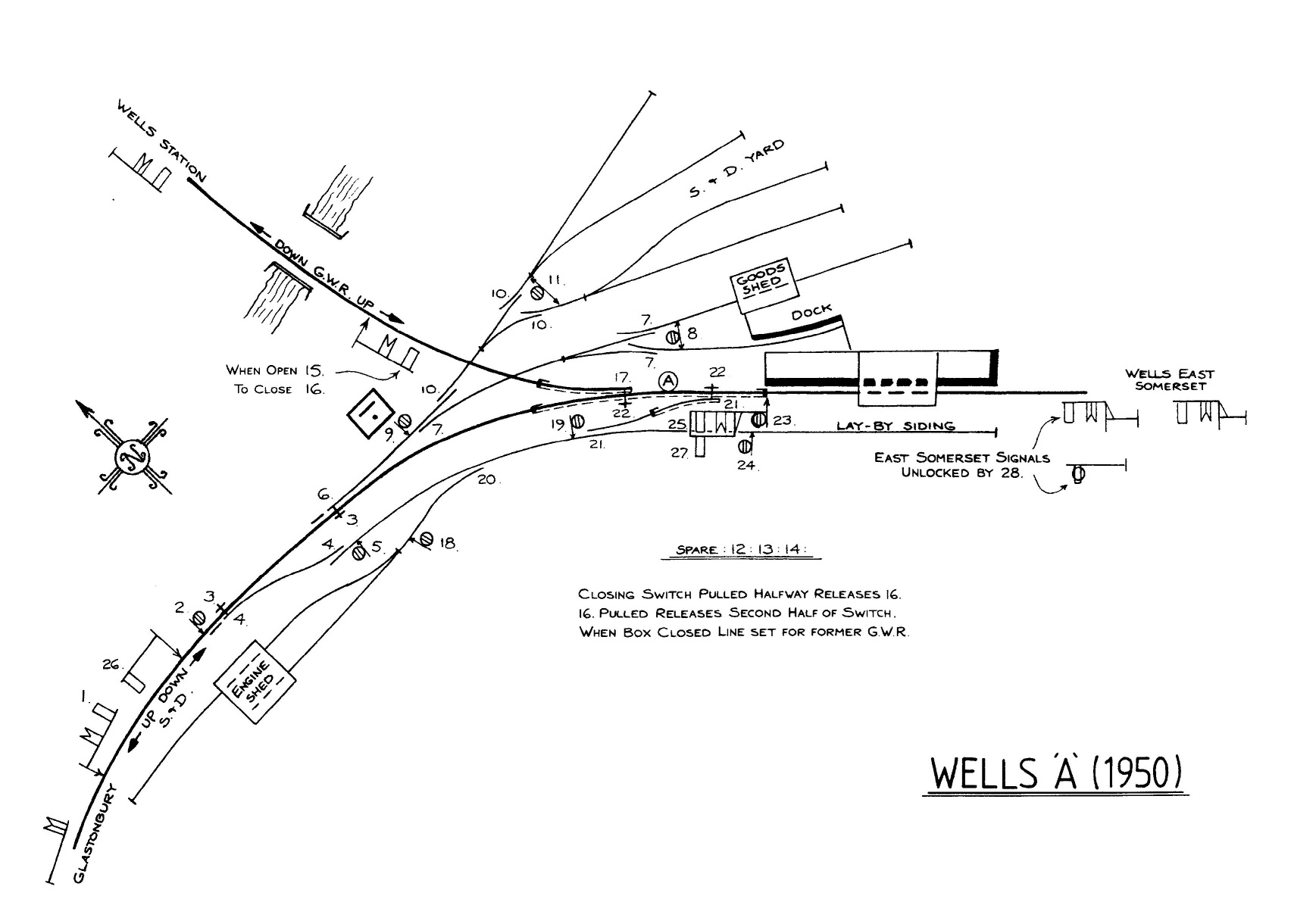 | Wells Tucker Street | Diagram post-1936 (courtesy Signalling Record Society) | |