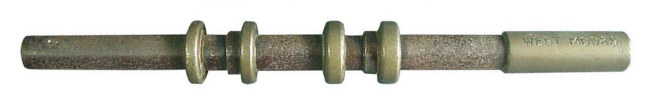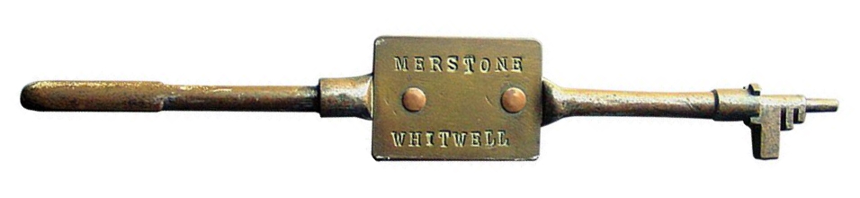 By contrast the GWR adopted the Electric Train Staff (ETS) system and they deployed this extensively throughout their network. ETS had been devised originally in 1888 by Messrs Webb and Thompson (of the London & North Western Railway) and licenced to the Railway Signal Company, although the GWR used an improved version patented in 1890. This equipment is sometimes called the 'large' ETS to distinguish it from a smaller 'miniature' ETS system developed later by the Railway Signal Company. Each staff was a steel tube, usually about 23" long, with a number of brass rings, so quite a substantial item; the names of the signal-boxes between which it applied were embossed on brass plates fixed on opposite sides of the tube at one end.