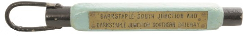 For the large ETS there was a colour code associated with each configuration, which on the GWR was as follows:- Red (A), Blue (B), Green (C), Yellow (D). It would appear that in most cases the paint was applied only to the end of the staff with the nameplates, but some staffs may have been painted over their full length. It is not known if the SR ever painted their Miniature ETS staffs.