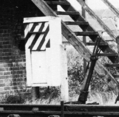 There was an interesting mixture of signals used by the two railway companies. The GWR used their standard pattern of signals with lower-quadrant (LQ) wooden arms on wooden posts, but some were renewed in British Railways days by tubular steel posts with metal arms. GWR ground-signals originally might have been the 'miniature semaphore' type, but eventually they had the usual round white discs. The S&DJR originally also used wooden-post signals with wooden LQ arms, but some posts were replaced subsequently by lattice posts (as used by the London & South Western Railway) and others by posts made from old rails (in the S&DJR style). The lattice posts had white-painted boards fitted to the front, a feature believed to be designed to improve signal sighting. During alterations in 1949 some of the S&DJR LQ arms were replaced by metal upper-quadrant versions. S&DJR ground signals originally were the Stevens 'flap' type, but later the Southern Railway standard Westinghouse 'half-disc' type appeared. It is likely that originally all the signal-boxes had working distant signals (including 'splitting' distants for trains approaching from the east towards the junction at Priory Road), but by about 1910 all the distants had been 'fixed' at caution.