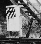 It is probable that the S&DJR line was worked originally by Block Telegraph between Wells 'A' and Wells Branch Junction. However after the abolition of Wells Branch Junction in 1878 the new single-line section WELLS 'A' - GLASTONBURY had 'Train Staff and Ticket' (TS&T) working until about 1895, when Electric Train Tablet(ETT) working was introduced (using Tyer's No 1 instruments). The short EAST SOMERSET - WELLS 'A' and WELLS 'A' - TUCKER STREET sections were worked under GWR regulations by a special 'no staff' system, which used ordinary GWR block instruments and bells without any form of physical train staff. (The block instrument and bell in East Somerset box for working to the 'A' box can be seen in this picture.) Sometime between 1920 and 1930 WELLS 'A' box was provided with 'switching out' facilities, so that it could be shut whenever the Glastonbury line was not in use and EAST SOMERSET - TUCKER STREET worked as a single block section under the same 'no staff' system.