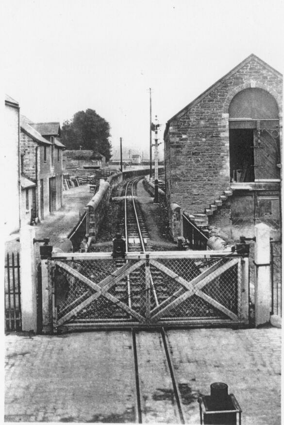 Immediately south-west of the passing-loop the single-line crossed Pilton Causeway by a gated level-crossing and then about 100 yards further on towards Barnstaple Town station there was another gated level-crossing across Braunton Road. These crossings were 29 chains and 20 chains respectively from Barnstaple Town station and there was an 8 MPH speed restriction over both crossings in both directions. Between these two crossings on the Down side of the line was Pilton Quay siding, which served a wharf on the River Yeo. In the early years this siding was accessed by a point at the Pilton end facing to Up trains, but at an unknown later date (believed to have been pre-1923) that connection was removed and replaced by a point at the Town end facing to Down trains.
