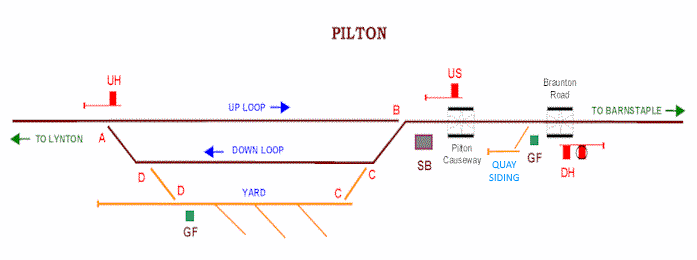 This page describes the signalling at Pilton on the former narrow-gauge Lynton & Barnstaple Railway (L&BR). Please see the separate Introduction to L&BR Signalling page for general background information and details of other pages on RailWest about the signalling of the L&BR. Click here for more general historical details about the L&BR and a Bibliography.