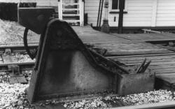 The precise details for the subsequent history of the remaining 'stub' of the S&DJR are a little uncertain. Although Bath Junction signal-box itself remained in use until 12-September-1966, ETT block working on the ex-S&DJR single-line was abolished and the remaining section to the Co-op Siding was worked as a siding. Loaded coal wagons would be propelled down the line to the siding and empty wagons hauled back to the junction. According to the 'K2' Weekly Notice for the closure on 6-March-1966 the siding point would be spiked, clipped and padlocked in the reverse position (ie set for the siding), but no mention is made about the trap-point. However Cooke [1] shows a short section of the former single-line retained in use beyond the siding entrance (as far as 72 chains from Bath Junction), which would make sense as the engine shunting the siding would need a second length of track to enable it to 'swop' the rakes of full and empty wagons. It is a matter of conjecture therefore whether the GF was abolished immediately and the point and/or trap-point converted to hand-levers, or whether it was retained to work the points and if so whether the former bank engine staff was retained as a key to unlock it. Most sources state that the ex-S&DJR line to the Co-op Siding was closed on 30-November-1967, although there is an unsubtantiated report that it was closed on 3-November-1968 and the track lifted in December 1968. The trackbed now forms part of a public path for pedestrians and cyclists, which extends from the site of Bridge 1 through the Devonshire and Combe Down tunnels to Midford.