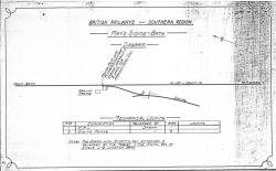 In 1911 a siding was opened to serve the the bakery and coal depot of the Twerton Co-operative Society (later the Bath & Twerton Co-operative Society) and this installation was inspected for the BoT by Major Pringle in November that year (National Archives file MT6/2206/10). This siding was on the Down side of the S&DJR single-line, just over ¾-mile from Bath Junction, almost directly opposite the site of the original Bath Ticket Platform. The siding points were facing to Down trains and controlled by an adjacent covered 2-lever GF located on the Up side of the line. This GF controlled the siding point and its Facing Point Lock, the trap-point at the siding exit and a bolt on the boundary gate across the siding. As at May's Siding, the GF was unlocked by the bank engine staff rather than the single-line tablet (click here for the 1914 S&DJR WTT Appendix instructions). The siding was known variously as 'Twerton Co-operative Society Siding' or just 'Twerton Siding' in railway records, but in later BR days it became the 'Bath Cooperative Society Siding'. The siding survived in use even after the closure of most of the S&DJR on 6-March-1966 and it was not closed until 30-November-1967 (see below for more details). |
