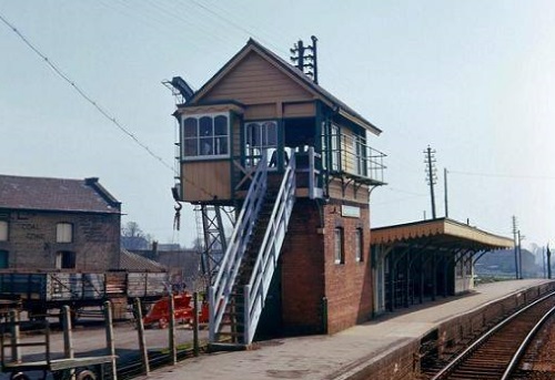 The railway station and signal-box at Blandford Forum (commonly just Blandford), in the county of Dorset, were located on the southern part of the main line of the Somerset & Dorset Joint Railway (S&DJR) from Bath to Wimborne. The southern end of the S&DJR was constructed originally by the Dorset Central Railway (DCR), which was opened on 1-November-1860 as a single-track line from Wimborne to a temporary station at Blandford St Mary. In 1863 the DCR was extended northwards to join with the Somerset Central Railway (SCR) and a replacement permanent station was constructed in the town of Blandford itself. The DCR and SCR had merged in 1862 to form the Somerset and Dorset Railway, which became the S&DJR in 1875 when the line was leased jointly by the Midland Railway (MR) and London & South Western Railway (L&SWR). After the Grouping of the railways of Great Britain in 1923 the S&DJR remained a Joint line, but now under the control of the London, Midland & Scottish Railway (LMS) and the Southern Railway (SR), who were the successors to the MR and L&SWR respectively. When the railways were nationalised in 1948 the Joint line came under the control of British Railways (Southern Region) (BR(SR)), who retained control at Blandford until the S&DJR closed to all passenger traffic on 6-March-1966. The station and signal-box were renamed formally from Blandford to Blandford Forum on 21-September-1953.