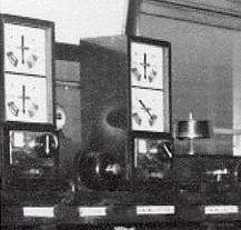 In 1947 the Great Western Railway developed a new pattern of 3-position block instrument with a rotary commutator worked by a round knob in a similar way to the Southern Railway instruments. This type of block equipment was used extensively after nationalisation by British Railways (Western Region), including for some alterations on ex-S&DJR lines. The photograph on the right shows two GWR 1947-pattern commutator block instruments in Evercreech Junction South signal-box in 1966 (click picture for larger image). It is known from BR(WR) records that another pair of these instruments were in use at Evercreech Junction North signal-box at the same time. It is possible that in the final years of the S&DJR other block instruments of this type were introduced elsewhere as replacements, but there is no further information available at the present time. The S&DJR, SR, GWR and BR(WR) 3-position block instruments all worked to common principles over 3 wires (one each for the Up and Down indicators and 1 for the separate block bell), even if they appeared quite different externally. It was quite feasible therefore (with some minor adjustments to circuit resistance values etc) to work block sections with different styles of instruments at each end. |