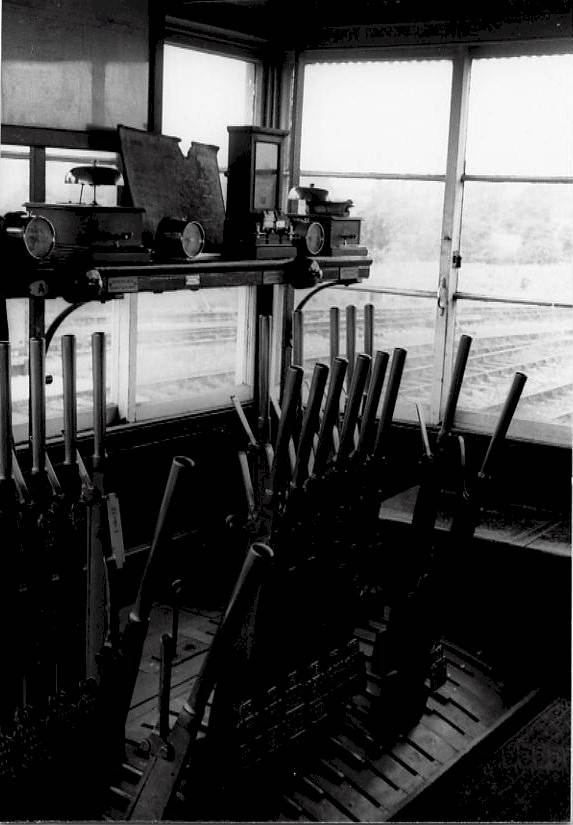 The Southern Railway block instruments were of a type where the commutator was prevented from turning to 'Line Clear' by an electro-magnetic lock released by a push-button on the instrument. At Masbury the push-button was wired to the commutator lock via lever 5 at Binegar (the bank staff release lever), to ensure that Masbury could not peg 'Line Clear' for a Down train if the bank staff was out of its lock at Binegar. When Masbury was closed the operation of its closing-switch extended this circuit through to Winsor Hill (and similarly through to Shepton Mallet when Winsor Hill was closed), so that in each case the release lock at the next box down the line from Binegar that was 'in switch' was controlled via lever 5 at Binegar. Fortunately Shepton Mallet was not fitted with a closing switch, or else this circuit might have stretched a long way done the line! It is strange that the SR left a mixture of equipment in use and did not replace all the instruments at once, but no doubt cost was a factor.